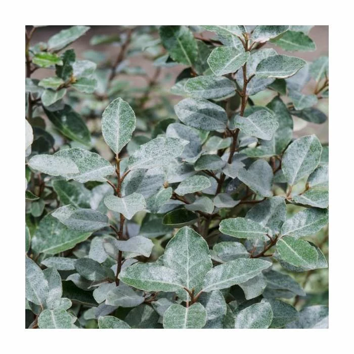 Bearing flowers in the autumn months, and fruits in spring, Eleagnus x ebbingei forms broad, ovate leaves, that sport muted-green colouring, complemented by delicate speckles of silver.