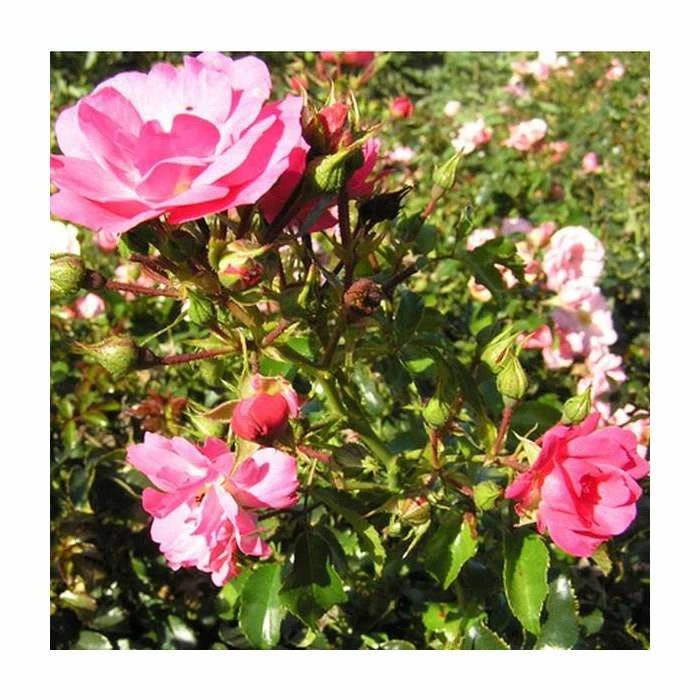‘Flower Carpet Pink’ is a hardy, free-flowering, ground covering rose which is bee and butterfly friendly. From July all the way through to September it blooms and produces large sprays of bright pink, medium-size, fragrant, semi-double flowers with glossy green foliage. With its low, spreading habit it makes great groundcover, fits in well along borders and also does well in containers. Famed for its disease resistance ‘Flower Carpet Pink’ is happy in any aspect and thrives in rich, well-drained soil on an open, sunny site. ‘Flower Carpet Pink’ has been awarded the Award of Garden Merit given by the Royal Horticultural Society (RHS), which helps gardeners make informed choices about plants.